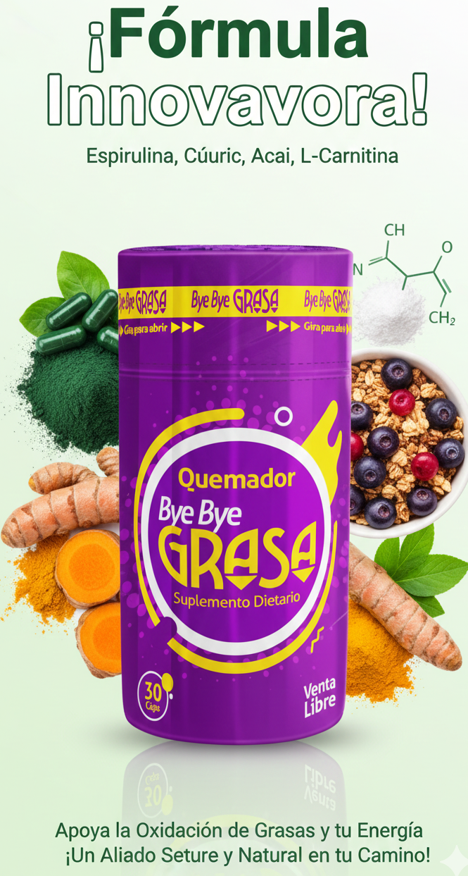 La fórmula innovadora con Espirulina, Cúrcuma, Acai y L-Carnitina para apoyar la oxidación de grasas y tu energía. ¡Un aliado seguro y natural en tu camino!
